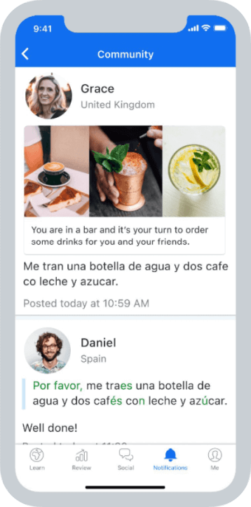 • Instant feedback and corrections • Be part of the largest language learning community in the world