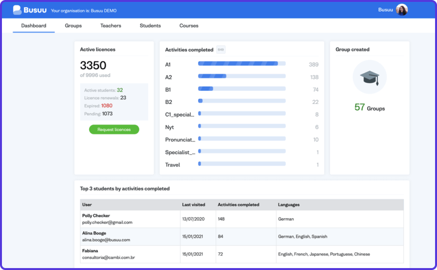 can be revoked and reallocated if employees leave or no longer want to participate. Enjoy flexibility and control of the Busuu solution!